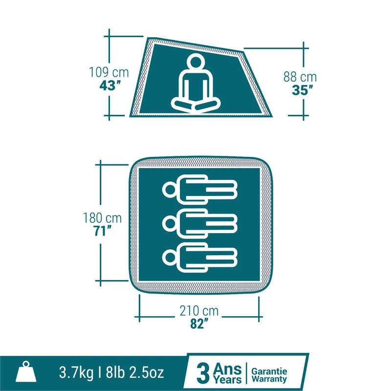Nos concepteurs ont conçu cette tente 3 personnes qui vous permettra d’installer votre tente emblématique en quelques minutes.Le confort d’un bel espace, et la tranquillité de l’installation. La tente 2 Seconds est toujours aussi rapide au montage et bénéficie d’un système guidé pour le repliage.